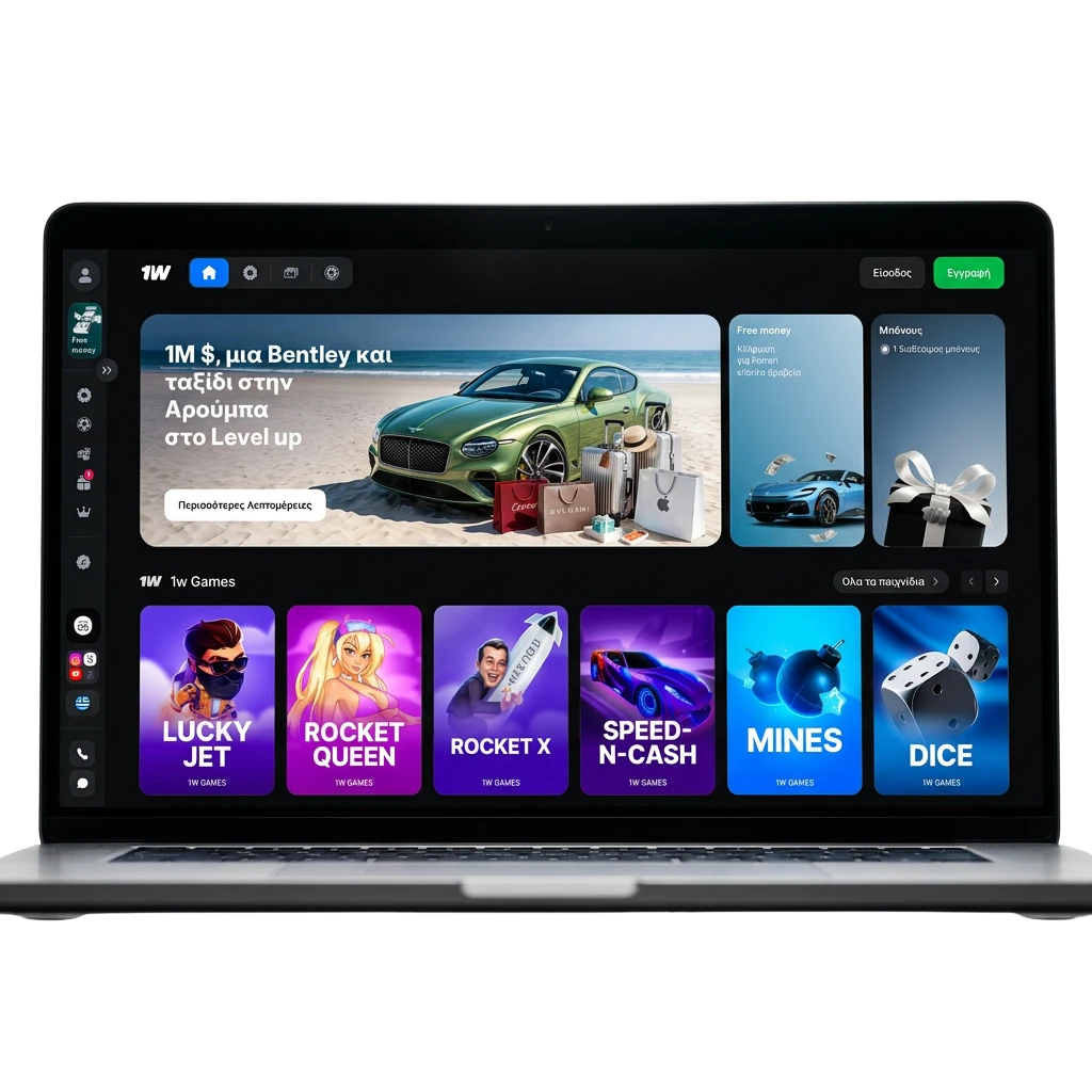Το website 1w διαθέτει καθαρή και διαισθητική διεπαφή, σχεδιασμένη για εύκολη πλοήγηση από Έλληνες χρήστες. Η κορυφαία γραμμή πλοήγησης περιλαμβάνει πρόσβαση στα τμήματα Αθλητικά Στοιχήματα, Casino, Live Casino, Κυβερνοαθλήματα, Προσφορές και Λογαριασμός, ώστε να βρίσκετε αυτό που ψάχνετε άμεσα.